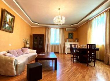 3-roomed 90 sq.m. apartment for sale in Saburtalo, on Budapesht str, on the 6th floor, through apartment, renovated, with central heating, isolated kitchen, air-conditioner, fireplace, furniture, technique, balcony, place for...