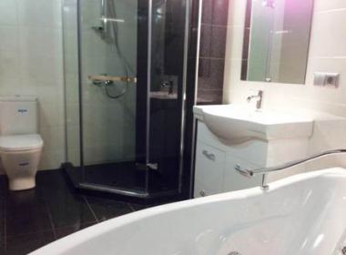 4-roomed 170 sq.m. apartment for rent in Vake, Ramishvili str, near Mziuri park, in new building, on the third floor, new renovated, 40 sq.m. living room, with central heating, 2 air-conditioners, modern furniture and technique (dishwasher), 2 bathrooms, jacuzii, internet, balcony, veranda, garage, security in the building