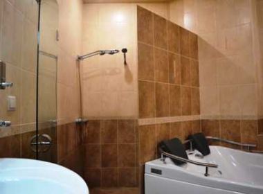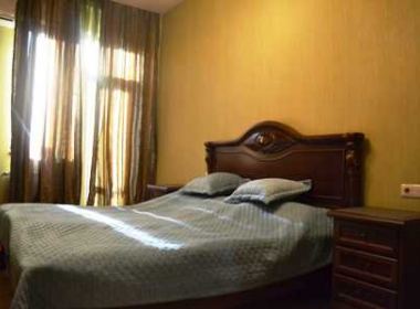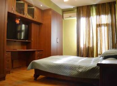 4-roomed 164 sq.m. apartment for rent in Vake, on Ramishvili str, in new building, on the third floor, new renovated, with central heating, 2 bathrooms, jacuzzi, dressing room, new furniture and technique, telephone, internet, metal door, alarm-system, balconies, underground autoparking, concierge service