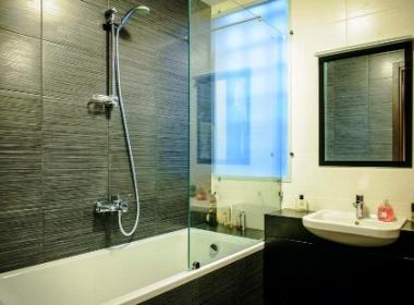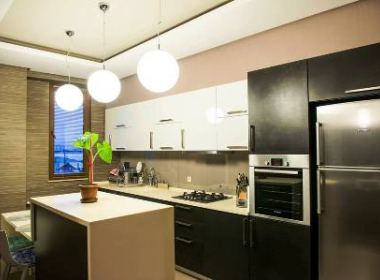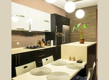 4-roomed 200 sq.m. duplex type apartment for rent in Vake, on Tabidze str, in new building, on I and II floors, new renovated, with central heating, 2 bathrooms, modern furniture and technique telephone, internet, metal door, 2 balconies, 45 sq.m. terrace