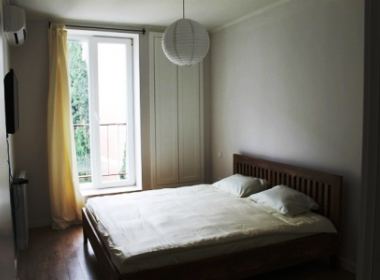2-roomed 50 sq.m. apartment for rent in Vake, on Arakishvili str, on the 4th floor, new renovated, with central heating, kitchen in studio style, air-conditioner, furniture, technique, telephone, internet, metal door