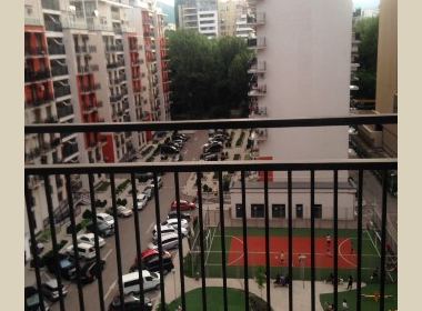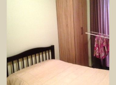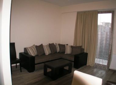 3-roomed 87 sq.m. apartment for rent in Saburtalo, on Kartozia str, in new building, on the 8th floor, new renovated, with central heating, kitchen in studio style, furniture, technique, telephone, internet, metal door, 3 balconies, beautiful yard with security