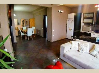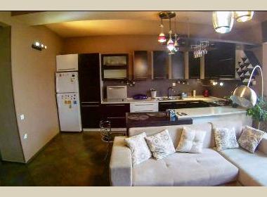 4-roomed 112 sq.m. apartment for rent in Vake, on Arakishvili str, in new building, on the 5th floor, new renovated, with central heating, 2 bathrooms, air-conditioner, studio type kitchen, furniture, technique, telephone, internet, metal door, balcony, parking, concierge service