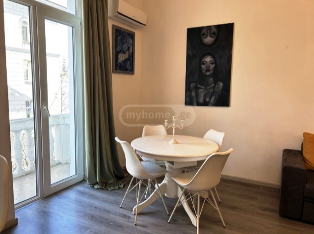 2-roomed 80 sq.m. apartment for rent in Vake, on Chavchavadze ave, in prestigious place, on the 4th floor, new renovated, with central heating, new furniture and technique, internet, 2 balconies