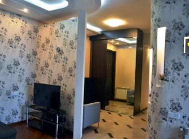 3-roomed 110 sq.m. apartment for rent in Saburtalo, on Pekin str, in new prestigious building, on the 12th floor, new renovated, with central heating, 2 bathrooms, air-conditioner, isolated kitchen, modern furniture and technique, telephone, internet, metal door, beautiful views, concierge servce