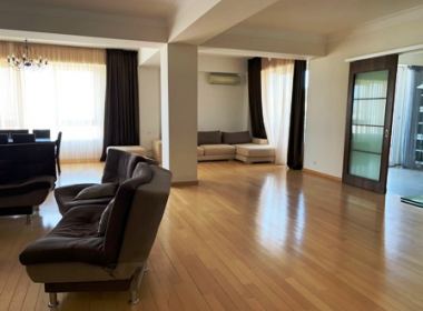 5-roomed 280 sq.m. apartment for rent in Vake, on Chavchavadze ave, in new prestigious building, on the 13th floor, 4 bedrooms, living room, isolated kitchen, 3 bathrooms, dressing room, new renovated, with central heating, air-conditioner, modern furniture and technique, telephone, internet, metal door, 3 balconies with excellent views, underground parking, concierge service