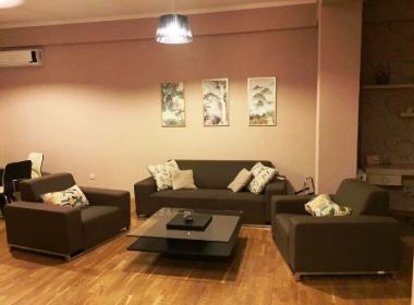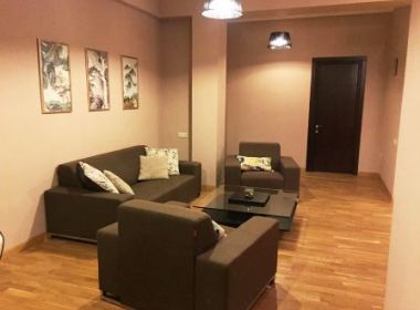 3-roomed 104 sq.m. apartment for rent in Vake, on Mukhadze str, in new building, on the 5th floor, new renovated, with central heating, air-conditioner, furniture, technique, telephone, internet, metal door, balcony, parking