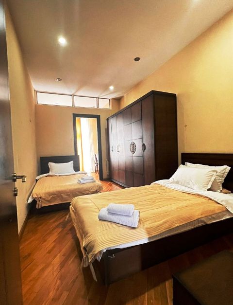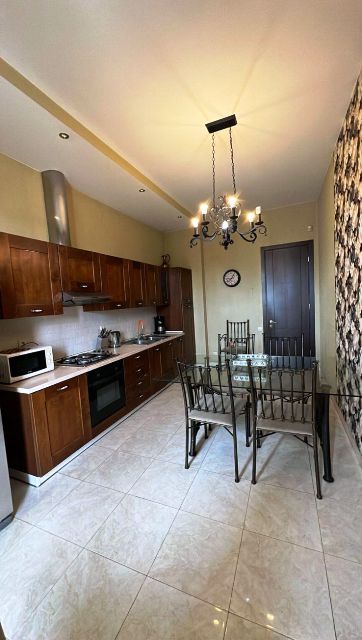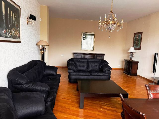 4-roomed 150 sq.m. apartment for rent in Vake, on Ramishvili str, in new building, on the 7th floor, 2 bedrooms, cabinet, hall, isolated kitchen, renovated, with central heating, 2 bathrooms, air-conditioner, furniture, technique, internet, large balcony, parking, concierge service