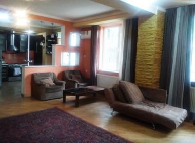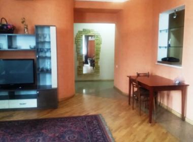 3-roomed 117 sq.m. apartment for daily-rent in Chugureti, on Tsinamdzgvrishvili str, in new building, on the third floor, corner apartment, new renovated, with central heating, air-conditioner, studio type kitchen, built-in closets, furniture, technique, telephone, internet, metal door, 3 balconies