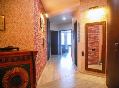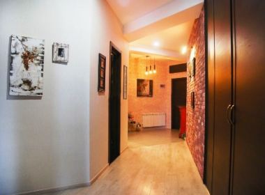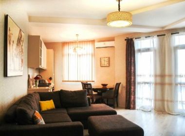 3-roomed 120 sq.m. apartment for rent on Vera, Chovelidze str, in new building, on the 5th floor, new high quality renovated, with central heating, built-in studio type kitchen, internet, 2 balconoes. underground autoparking