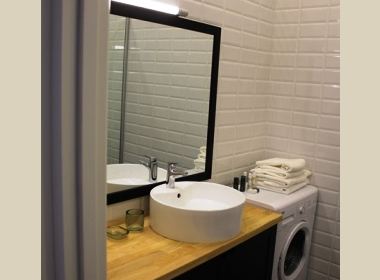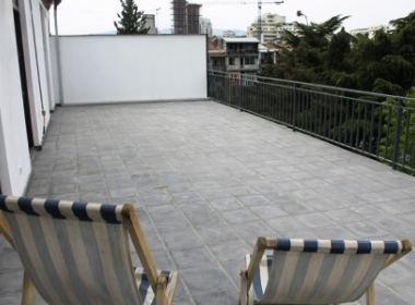 3-roomed 142 sq.m. apartment for rent in Vake, on Paliashvili str, on the 6th floor, new renovated, with central heating, air-conditioner, studio type kitchen, all furniture and technique (dishwasher), telephone, internet, metal door, 60 sq.m. veranda