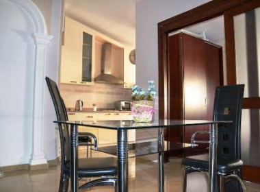 2-roomed 80 sq.m. apartment for rent in Vake, on Arakishvili str, on the 4th floor, renovated, with central heating, air-conditioner, studio type kitchen, furniture, technique, telephone, internet, metal door, balcony