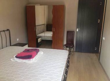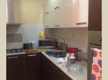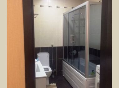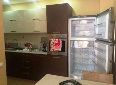3-roomed 88 sq.m. apartment for rent in Vake, on Abashidze str, in new building, on the 5th floor, new renovated, with central heating, air-conditioner, studio type kitchen, furniture, technique, telephone, internet, metal door, 2 balconies