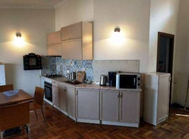 2-roomed 96 sq.m. apartment for rent in Sololaki, on Betlemi str, in new building, on the second floor, new renovated, with central heating, air-conditioner, fireplace, studio type kitchen, furniture, technique, telephone, internet, metal door, 16 sq.m. balcony with beautiful views