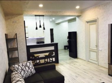 2-roomed 70 sq.m. apartment for rent in Vake, on Tskhvedadze str, near park Vake, in new building, on the 4th floor, new renovated, with central heating, air-conditioner, all furniture and technique, telephone, internet, metal door, balcony with beautiful views, parking