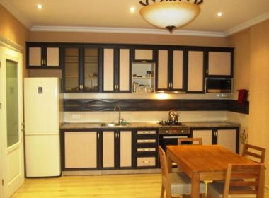 2-roomed 55 sq.m. apartment for rent in Isani, near 300 Aragveli metro, in new building, on the third floor, new renovated, with central heating, 2 air-conditioners, studio type kitchen, furniture, technique, telephone, internet, metal door, balcony, closed entrance