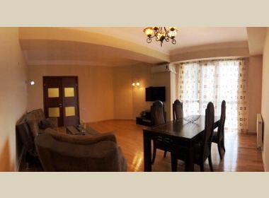 150 sq.m. apartment for rent in Vake, on Chavchavadze II ln, in new building, on the second floor, 3 rooms, new renovated, with central heating, air-conditioner, telephone, internet, metal door, balconies, parking, concierge service