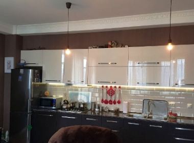 3-roomed 90 sq.m. apartment for rent in Sanzona, near Grmagele metro, in new building, on the 12th floor, new renovated, with central heating, air-conditioner, studio type kitchen, furniture, technique, telephone, internet, metal door, balconies