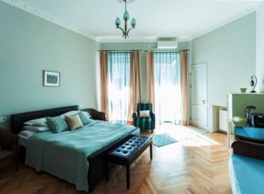 3-roomed 150 sq.m. apartment for daily-rent in Vake, on Barnov str, near Round garden, on the third floor, renovated, with central heating, 3 bathrooms, furniture, technique, telephone, internet, metal door, jalousie, balconies