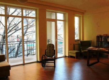 3-roomed 141 sq.m. apartment for rent in Saburtalo, on Mitskevich str, in new building, on the third floor, new renovated, with central heating, air-conditioner, 2 bathrooms, isolated kitchen, furniture, technique, telephone, internet, metal door, veranda, renovated entrance