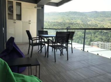 3-roomed 127 sq.m. apartment for rent in Vake, on Chavchavadze ave, in new building of AXIS, on the 14th floor, new renovated, with central heating, furniture, technique, telephone, internet, large veranda