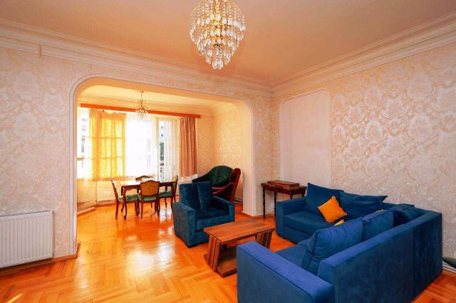 3-roomed 120 sq.m. apartment for rent in Vake, on Mtskheta str, near Round Garden, on the 6th floor, new renovated, with central heating, air-conditioner, fireplace, furniture, technique, internet, balcony