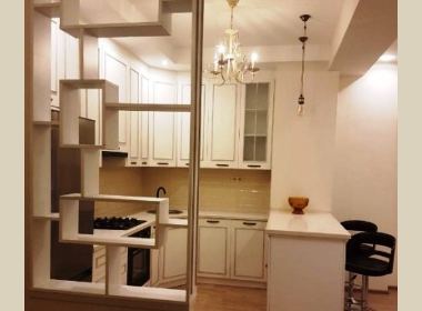 3-roomed 82 sq.m. apartment for rent in Saburtalo, on Alexidze str, in new building, on the 4th floor, new renovated, with central heating, furniture, technique, telephone, internet, metal door, balcony