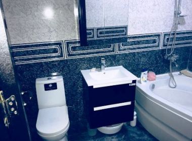 4-roomed 156 sq.m. apartment for rent in Saburtalo, on Lortkipanidze str, territory of Shankhai, in new building, on the 9th floor, new renovated, with central heating, furniture, technique, telephone, internet, metal door, large balcony with beautiful views