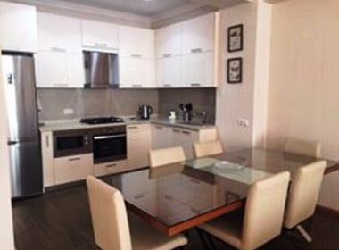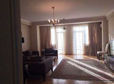 3-roomed 137 sq.m. apartment for rent in Vake, on Chavchavadze ave, in new building, on the 9th floor, new renovated, with central heating, 2 bathrooms, dressing room, air-conditioner, furniture, technique (dishwasher), telephone, internet, metal door, balcony, parking, concierge service