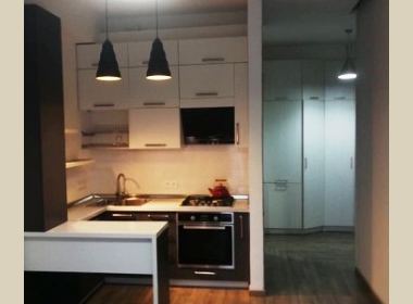 2-roomed 45 sq.m. apartment for rent in Saburtalo, on Tsagareli str, in new building, on the 4th floor, new renovated, with central heating, air-conditioner, studio type kitchen, furniture, technique, telephone, internet, metal door, balcony
