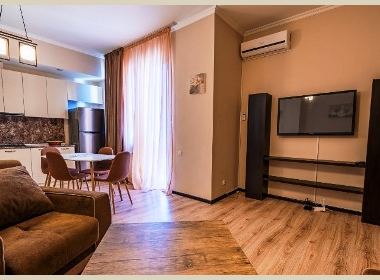 2-roomed 70 sq.m. apartment for rent in Vake, on Abashidze str, on the 6th floor, new renovated, with central heating, air-conditioner, furniture, technique, telephone, internet, metal door, balcony, parking