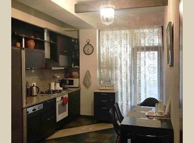 3-roomed 135 sq.m. apartment for rent in Vake, on Tabidze str, in new building, on the third floor, new renovated, with central heating, air-conditioner, 2 bathrooms, studio type kitchen, furniture, technique, telephone, internet, metal door, balcony