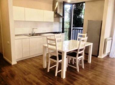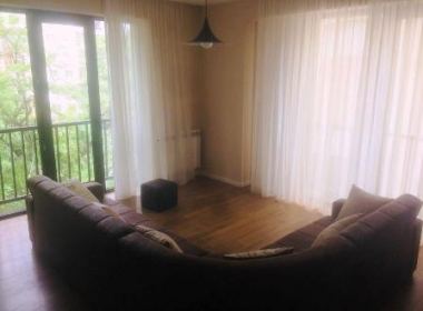 3-roomed 100 sq.m. apartment for rent on Vera, Nikoladze str, in new building, on the 4th floor, new renovated, with central heating, 2 bathrooms, air-conditioner, studio type kitchen, furniture, technique, telephone, internet, metal door, balcony, place for parking