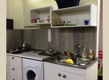 2-roomed 45 sq.m. apartment for rent in Vake, on Chavchavadze ave, on the 5th floor, new renovated, with central heating, air-conditioner, studio type kitchen, furniture, technique, telephone, internet, metal door, balcony