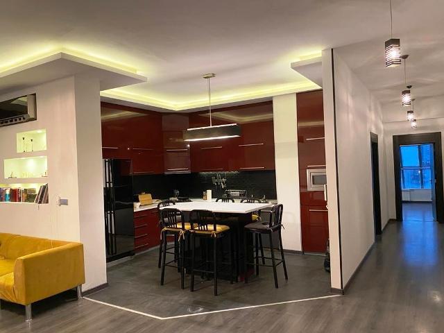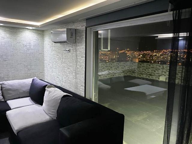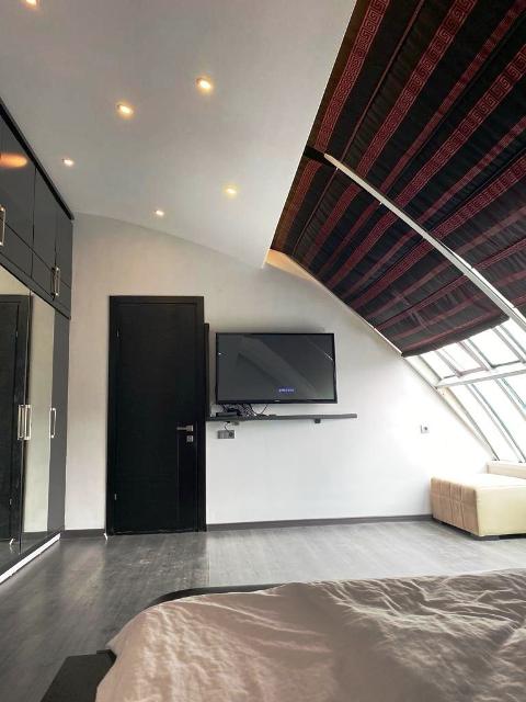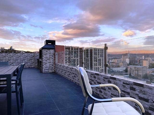 5-roomed 170 sq.m. duplex type apartment for rent in Saburtalo, on Mitskevich str, in new building, on the 18th and 19th floors, 3 bedrooms, studio type kitchen, 2 bathrooms, master-bedroom, dressing room, new renovated, with central heating, air-conditioners in all rooms, all furniture and technique, jacuzzi, internet, 180 sq.m. veranda with excellent views, place for parking