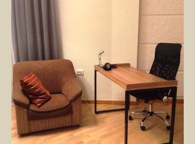 3-roomed 104 sq.m. apartment for rent in Mtatsminda-Sololaki, on Chonkadze str, in new building, on the second floor, renovated, with central heating, furniture, technique, telephone, internet, metal door, balcony