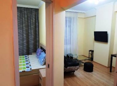 2-roomed 45 sq.m. apartment for rent in Vake, on Araishvili str, in new building of XIS, on the second floor, new renovated, with studio type kitchen, central heating, air-conditioner, furniture, technique, telephone, internet, metal door, balcony