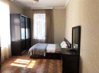 3-roomed 120 sq.m. apartment for rent in Vake, on Janashvili str, near Round Garden, on the third floor, renovated, with central heating, 2 air-conditioners, isolated kitchen, furniture, technique, telephone, internet, metal door, 2 balconies, place for parking