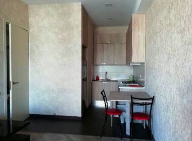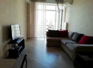2-roomed 55 sq.m. apartment for rent in Saburtalo, on Tsagareli str, in new building, on the 5th floor, new renovated, with open plan living room, central heating, air-conditioner, furniture, technique, telephone, internet, balcony