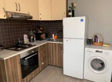 2-roomed 55 sq.m. apartment for rent in Saburtalo, on Gazapkhuli str, near Delisi metro, in new building, on the 14th floor, new renovated, with central heating, air-conditioner, open plan living room, furniture, technique, telephone, internet, balcony with beautiful views, closed entrance, playground and square