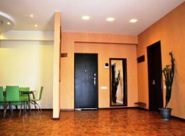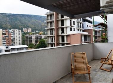 3-roomed 90 sq.m. apartment for rent in Vake, on Shatberashvili str, in new building, on the 6th floor, new renovated, with open plan living room, central heating, air-conditioner, furniture, technique, telephone, internet, 17 sq.m. veranda
