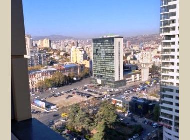 2-roomed 56 sq.m. apartment for rent in Saburtalo, on Berbuki str, in new building, on the 16th floor, new renovated, with open plan living room, central heating, air-conditioner, furniture, technique, telephone, internet, metal door, balcony with beautiful views