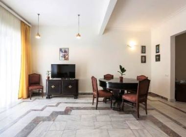 2-roomed 80 sq.m. apartment for rent in Chugureti, on Marjanishvili str, on the 5th floor, new renovated, with central heating, furniture, technique, telephone, internet, metal door, 2 balconies with beautiful views, concierge service