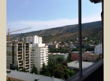 2-roomed 85 sq.m. apartment for rent in Vake, on Chavchavadze ave, in new building, on the 12th floor, new renovated, with central heating, open plan living room, air-conditioner, new furniture and technique, telephone, internet, metal door, balcony, veranda with beautiful views, place for parking