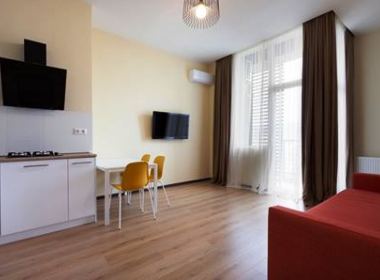 3-roomed 70 sq.m. apartment for rent in Saburtalo, on Tsintsadze str, in new building of AXIS, on the 11th floor, new renovated, with central heating, air-conditioner, furniture, technique, telephone, internet, metal door, balcony, concierge service
