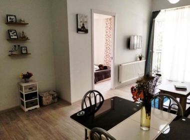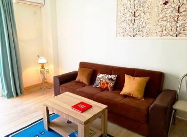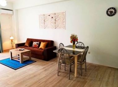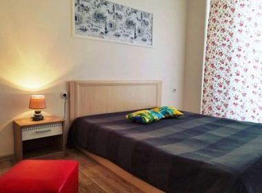 2-roomed 55 sq.m. apartment for rent in Didube, on Tsereteli ave, in new building, on the 4th floor, new renovated, with open plan living room, central heating, air-conditioner, furniture, technique, telephone, internet, metal door, balcony, parking