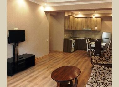 2-roomed 70 sq.m. apartment for rent in Gldani, in new building, on the second floor, new renovated, with open plan living room, central heating, air-conditioner, furniture, technique, telephone, internet, balcony, closed yard