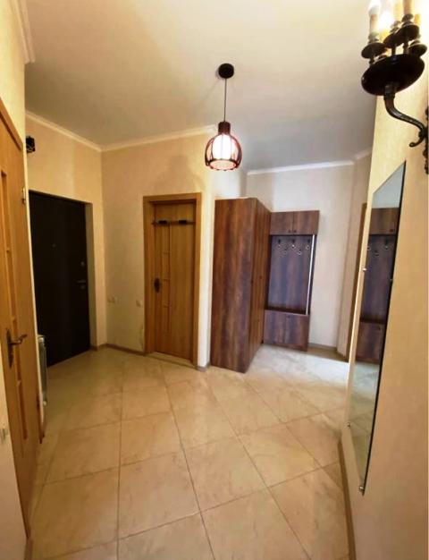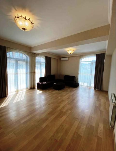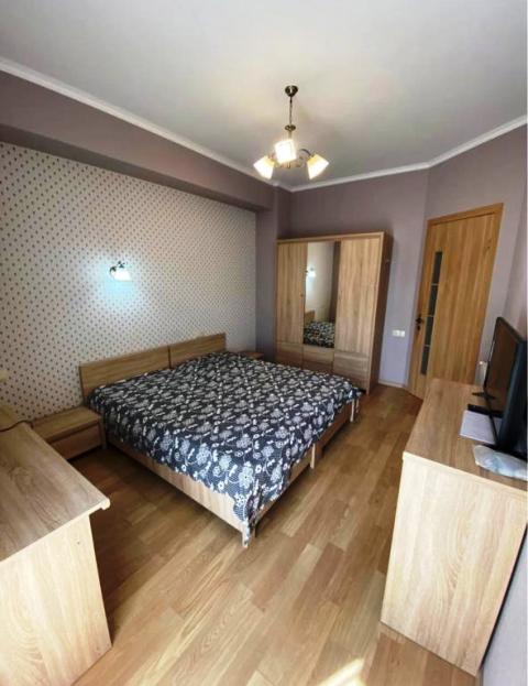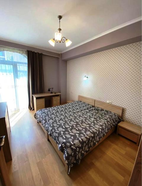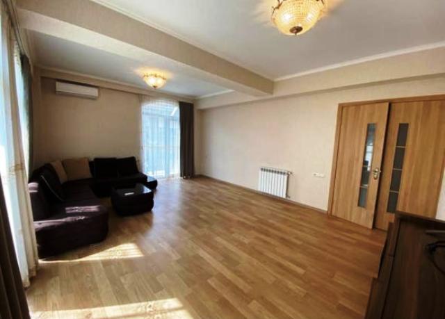 3-roomed 120 sq.m. apartment for rent in Vake, on Razmadze str, in new building, on the 5th floor, new renovated, with central heating, isolated kitchen, 2 bathrooms, 2 air-conditioners, all furniture and technique, internet, balconies, parking