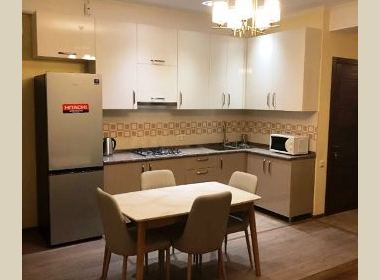 2-roomed 55 sq.m. apartment for rent in Saburtalo, on Jikia str, in new building, on the 10th floor, new renovated, with central heating, air-conditioner, open plan living room, furniture, technique, telephone, internet, balcony