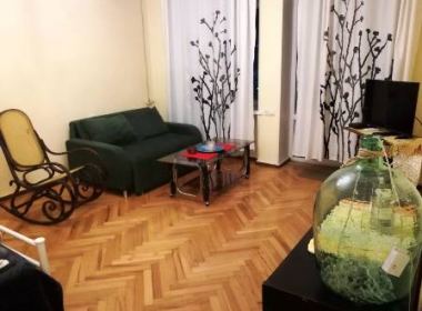 1-roomed 45 sq.m. apartment for rent in Mtatsminda-Sololaki, on Sanapiro str, on the 4th floor, renovated, with seasonal conditioner, furniture, technique, telephone, internet, balcony with beautiful views